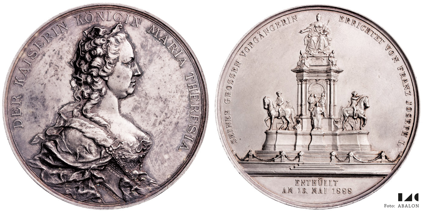 Ag medaile na odhalení pomníku ve Vídni 1888, sig. Scharff, 64 mm, 104,95 g