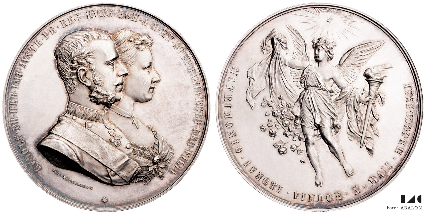 Ag medaile svatební se Stefanií 1881, sig. Tautenheyn, 55 mm, 81,90 g