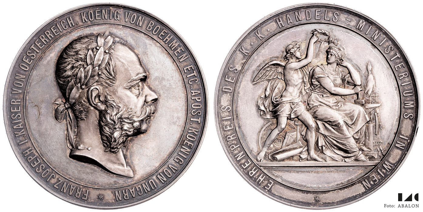 Ag medaile - cena ministerstva obchodu 1888 Brno, sig. Tautenheyn, 57 mm, 69,75 g