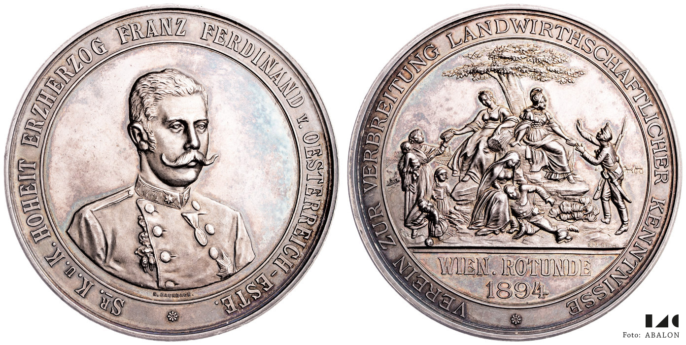 Ag medaile pro šíření hosp. znalostí 1894, rotunda Vídeň, sig. Bachrach, 64 mm, 118,47 g