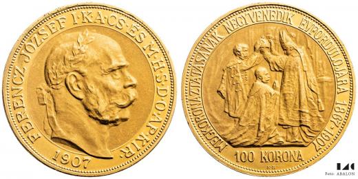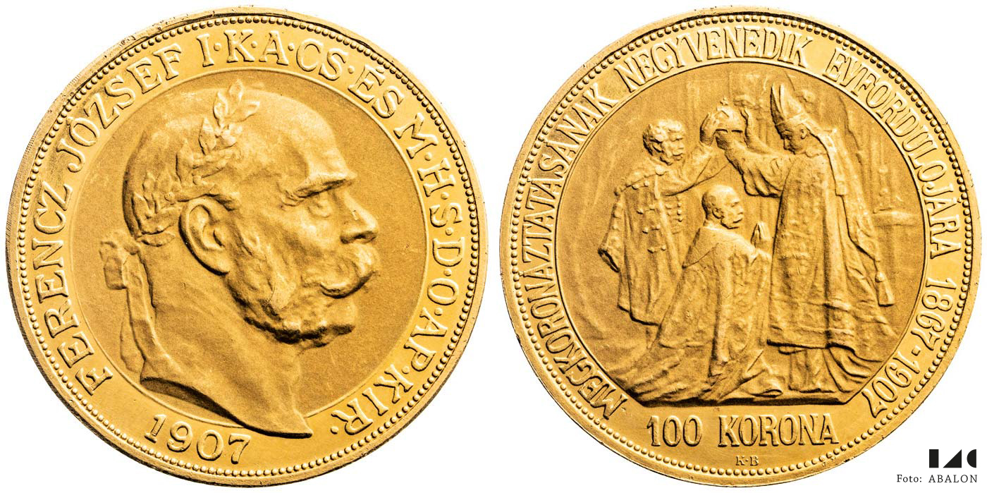 100 koruna 1907 KB, korunovační, 33,85 g
