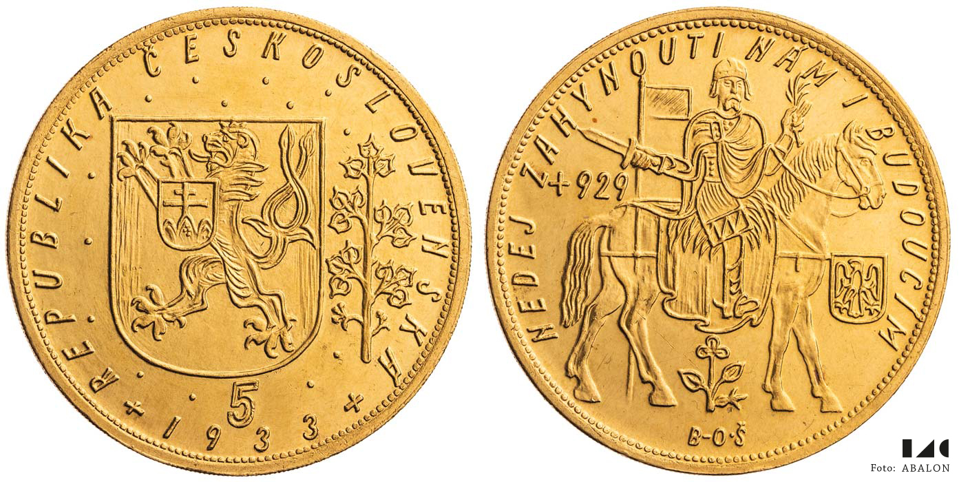 5 dukát 1933, sv. Václav, raženo 1 752 ks