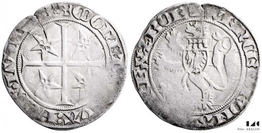 Groš, 27 mm, 2,67 g, lev se znakem, opis, kříž v polích hvězdy, Weil 169, Probst L 171-1, nedor., n.hr.