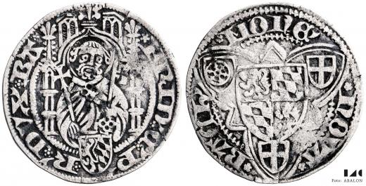 Groš b.l., Ag, minc. Bacherach, sv. Petr drží žezlo a kříž, čtyři erby, SJ 2433/1198