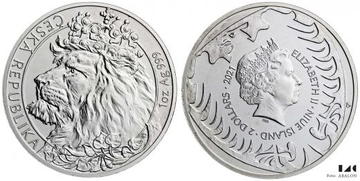 Medaile Český lev 2021, 2 dollar Niue Island, 1 OZ Ag