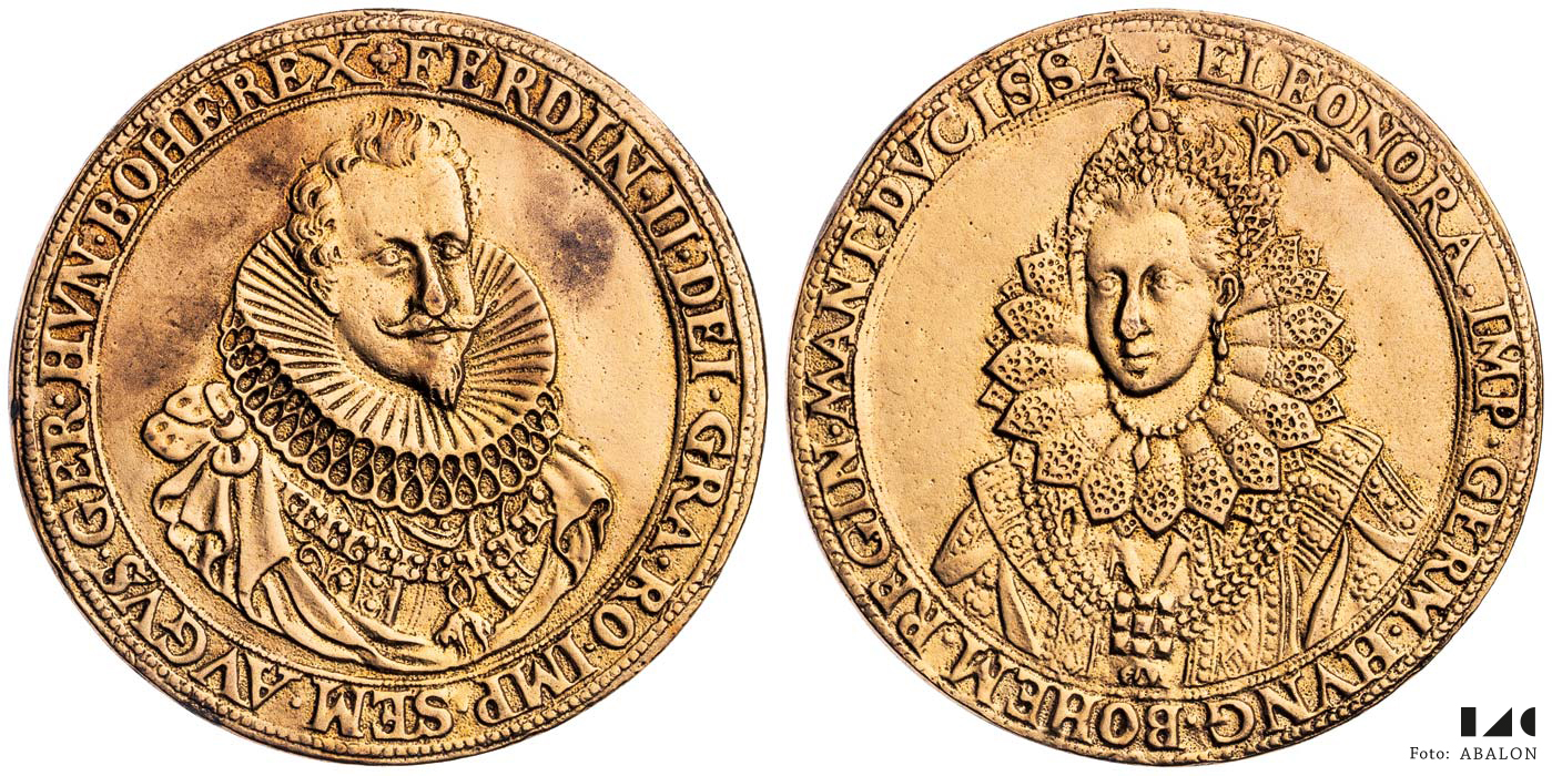 Medaile - portrét panovníka a manželky Eleonory, b.l., pozlaceno, 53 mm, nesign.