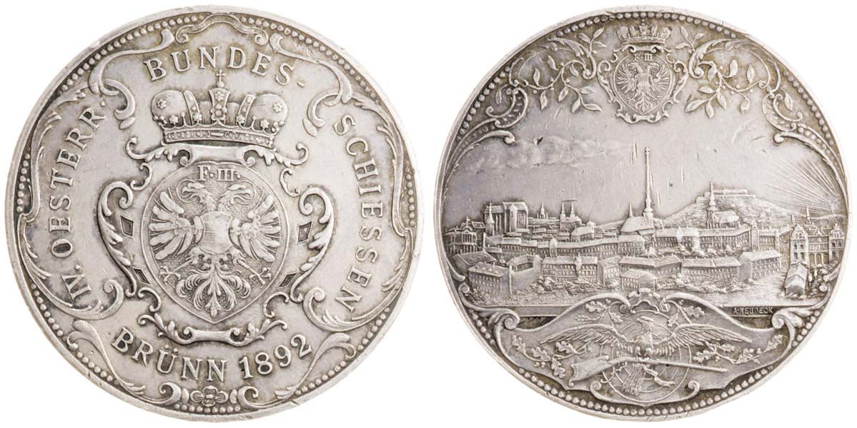 IV. Rakouské střelby 1892, Ag 36 mm, 22,86 g, nesign., několik dr.škr. a nep. hr.