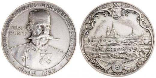 VII. moravské zemské střelby 1899, arc. Rainer, Ag 37 mm, 25,11 g, sig. Friedrich