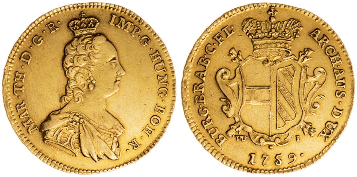 2 sovrano 1759 WI, Vídeň, Her. 324, 11,06 g