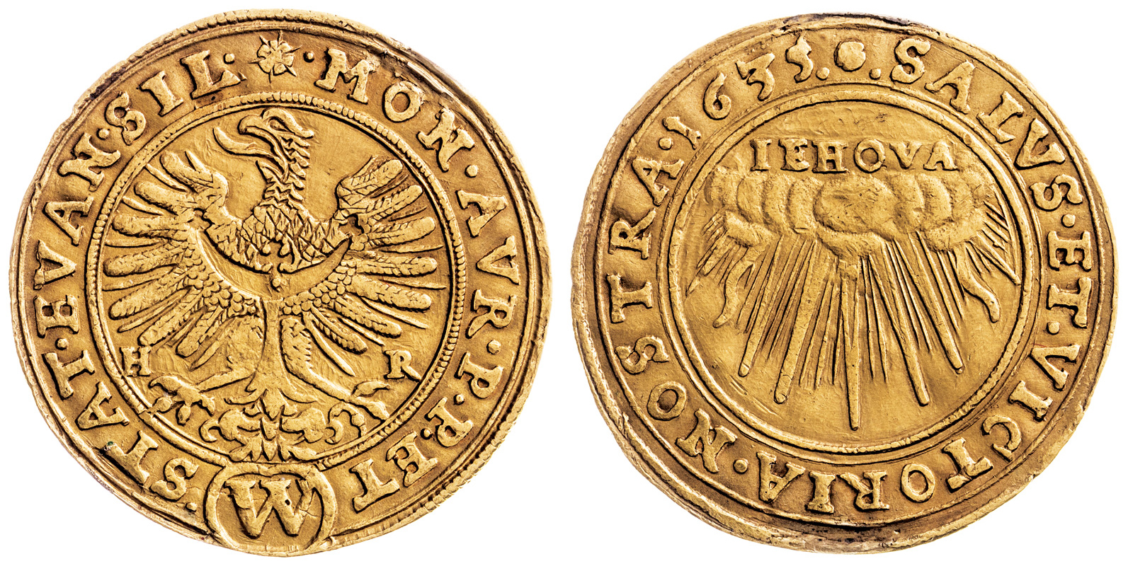 Evangelické slezské stavy (1633-1635) Dukát 1635 HR, Vratislav, Rieger, hal. 1144, 3,41 g