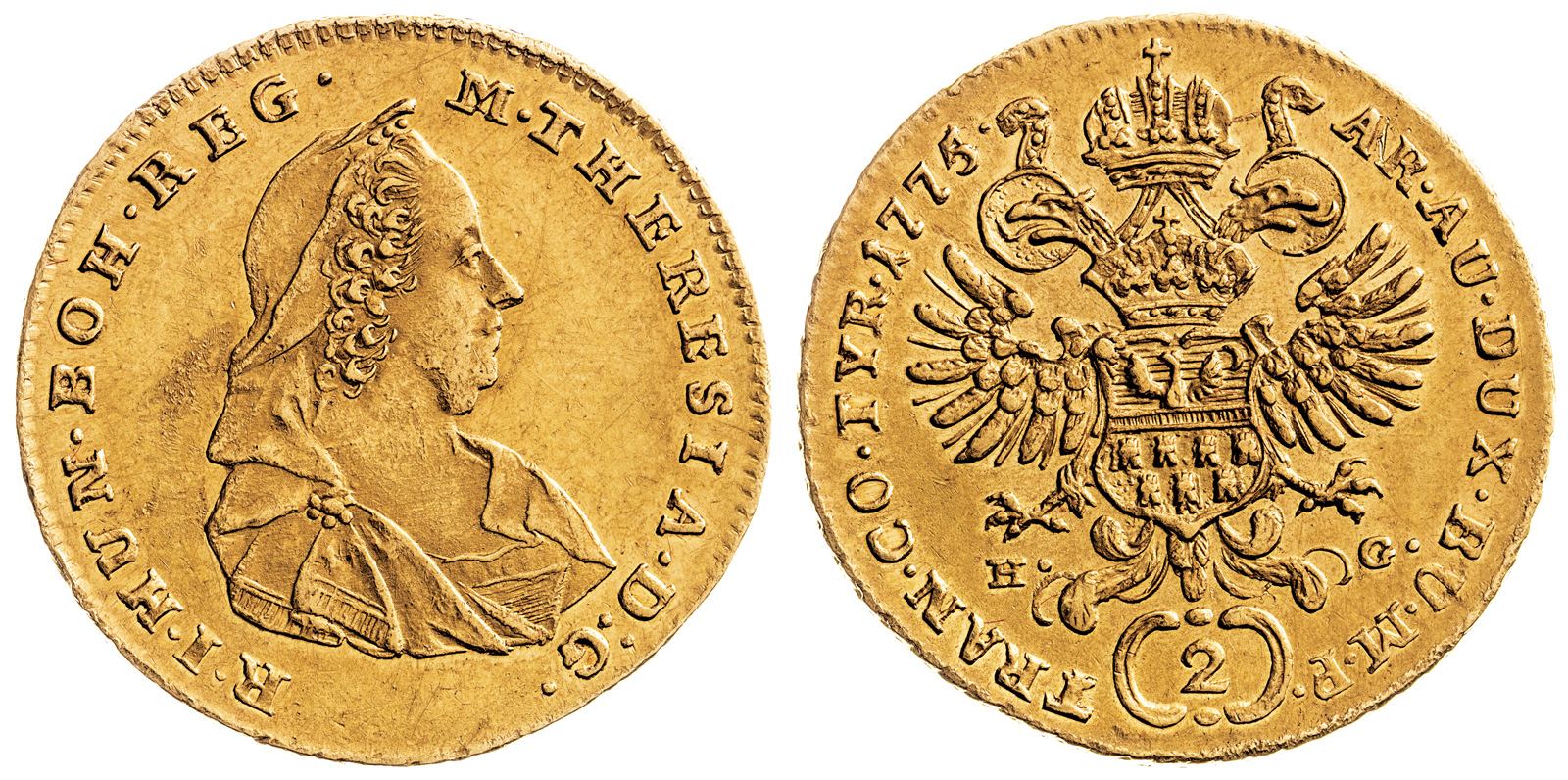 Marie Terezie (1740-1780) 2 dukát 1775 HG, Her. 72, 6,97 g