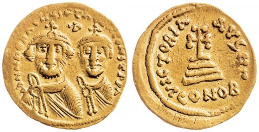 Solidus 4,41 g, Heraclius a Heradius Constantin, kříž na 3 stupních, CONOB, Sear 743