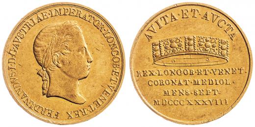 Dukát na korunovaci na lombardsko-benátského krále 6.9.1838 v Miláně, Nov. G 9a, 3,51 g