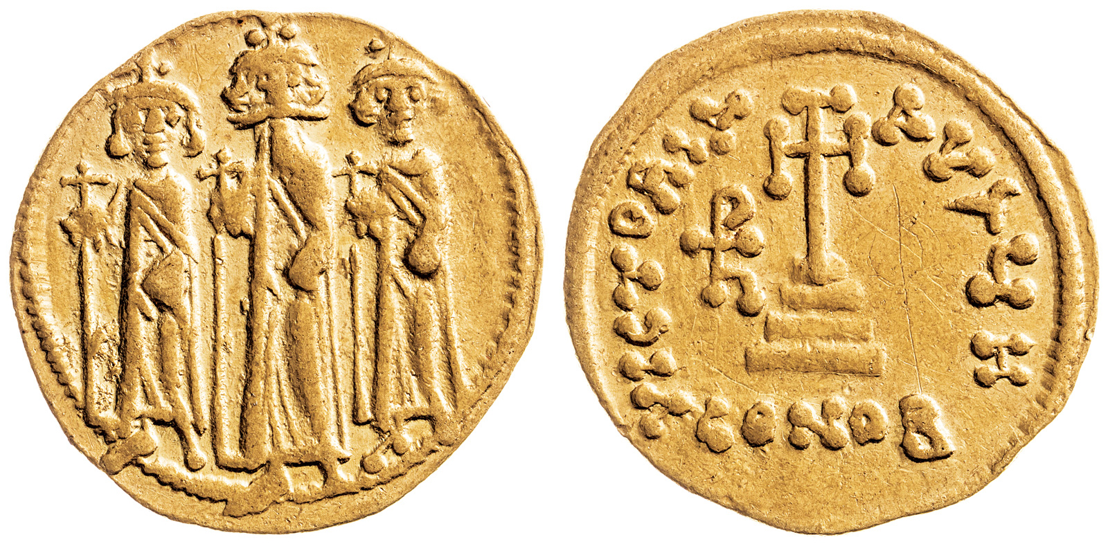 Heraclius (610-641) Solidus 4,37 g, Heraclius mezi Heraclonas a Constantimus, kříž na 3 stupních, CONOB, Sear 761