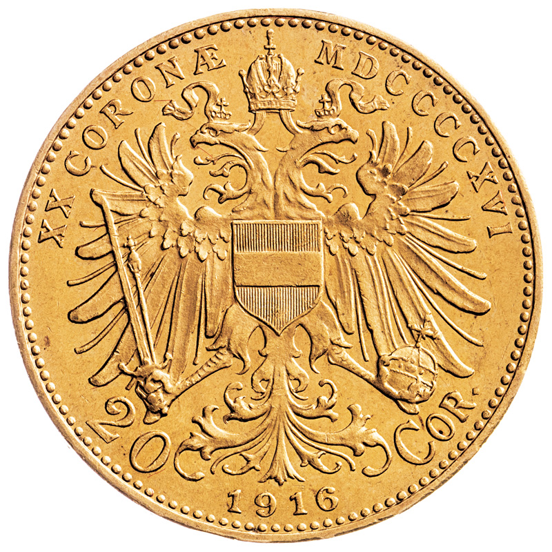 František Josef I. (1848-1916) 20 koruna 1916, nový znak