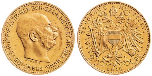 František Josef I. (1848-1916) 20 koruna 1916, nový znak