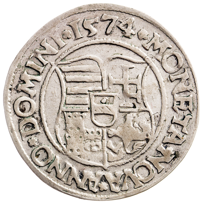 Maxmilian II. (1564-1576) Široký groš 1574 KB, Hus. 987
