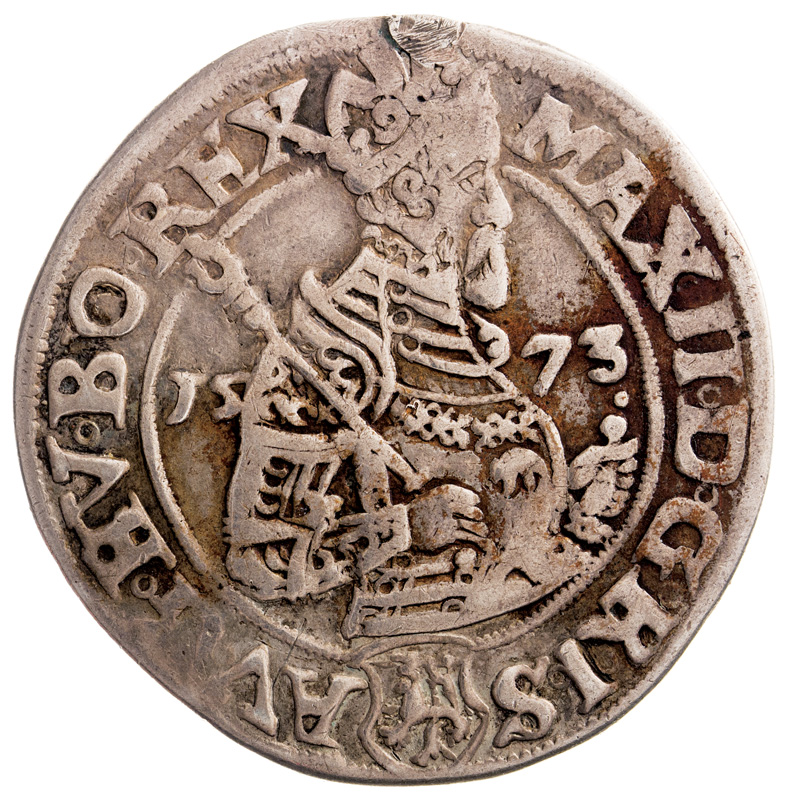 Maxmilian II. (1564-1576) 1/4 tolar 1573, Jáchymov, Geitzkofler, Hal. 235, m.o.