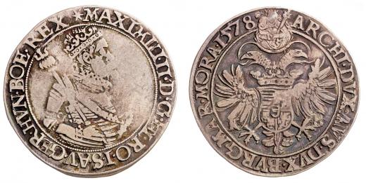 Maxmilian II. (1564-1576) 1/2 tolar 1578 KB, Hus. 983, chybí ve Vídeňském Münzkabinetu "R"