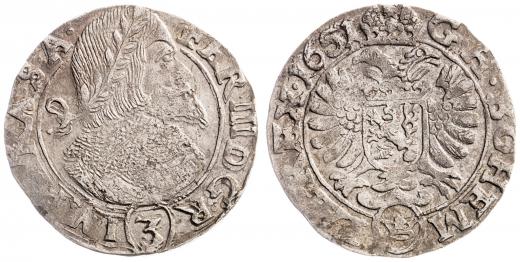 Ferdinand III. (1637-1657) 3 krejcar 1651, Jáchymov, Küttner, Hal. 1220