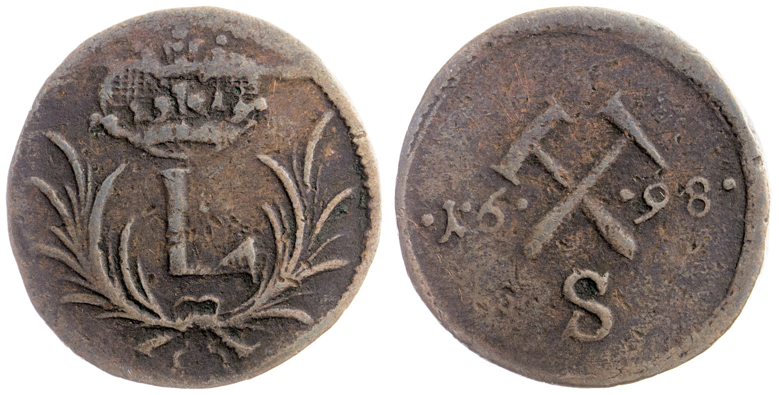 Leopold I. (1657-1705) Cu důlní známka 1698 S, Her. 8