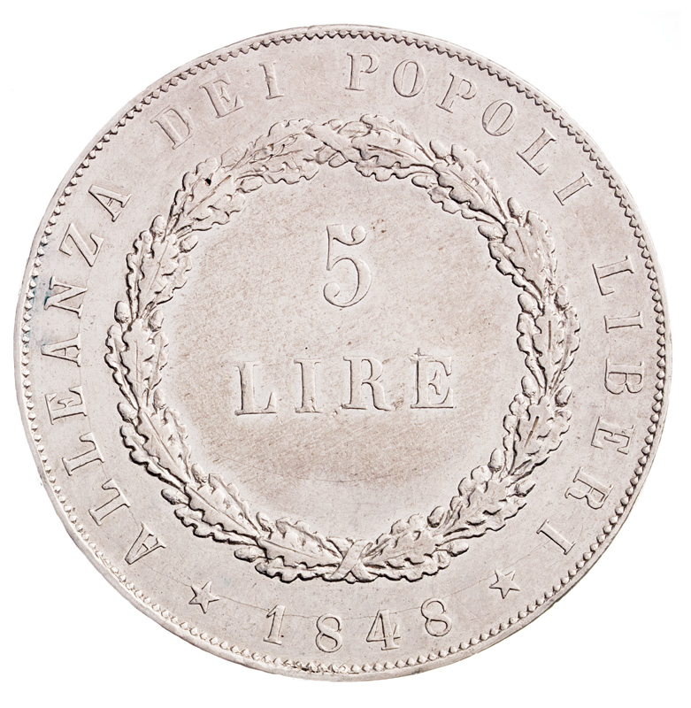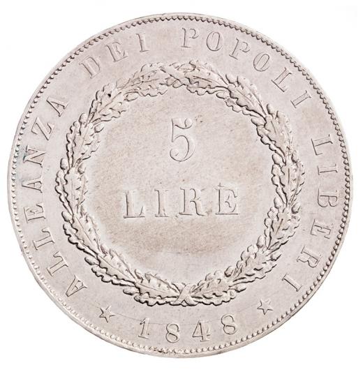 Revoluce (1848-1849) 5 lira 1848 V, lev podstavci, Her. 9