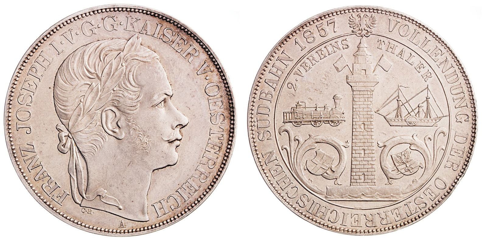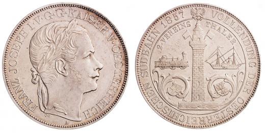 František Josef I. (1848-1916) 2 tolar 1857 A, spolkový, Jižní dráha, 37,0 g, n. škr., n. hr.