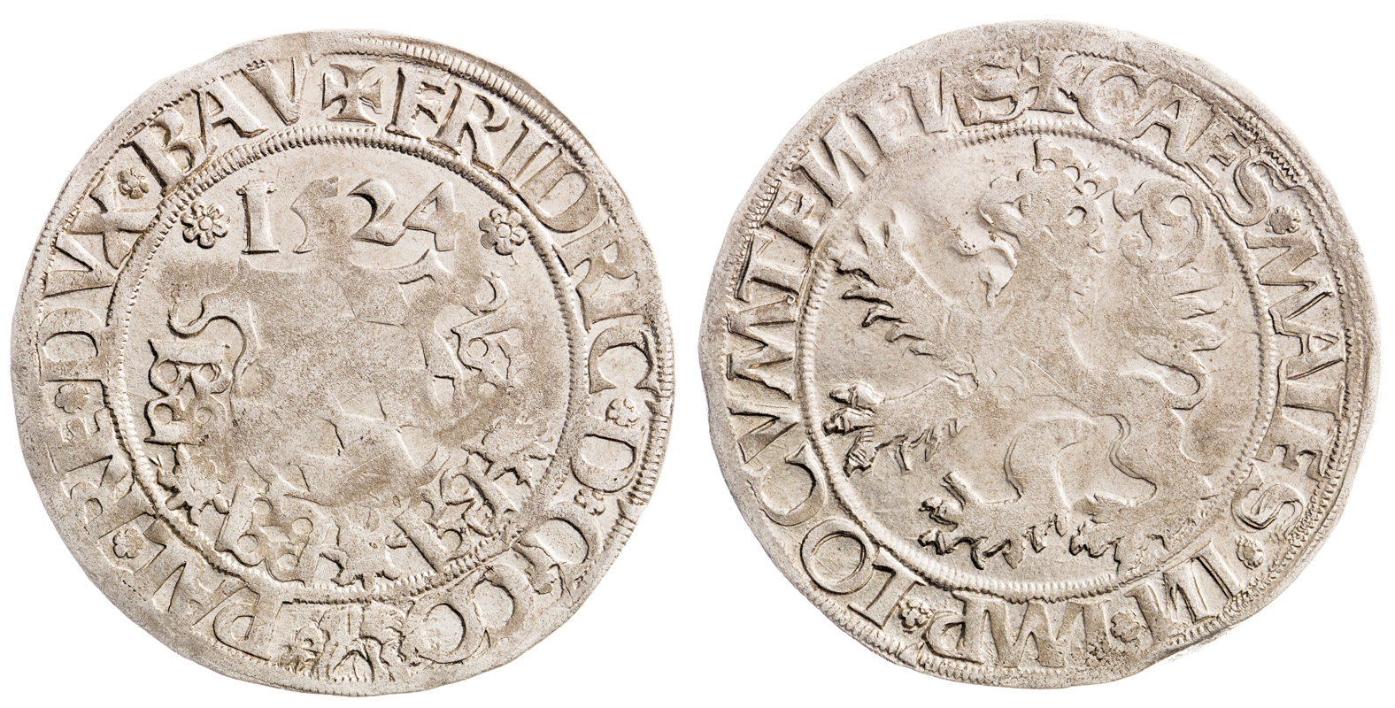 Pfalz Friedrich III., bílý (1508-1556) Batzen 1524, titl. "IOCUM TEMENS"