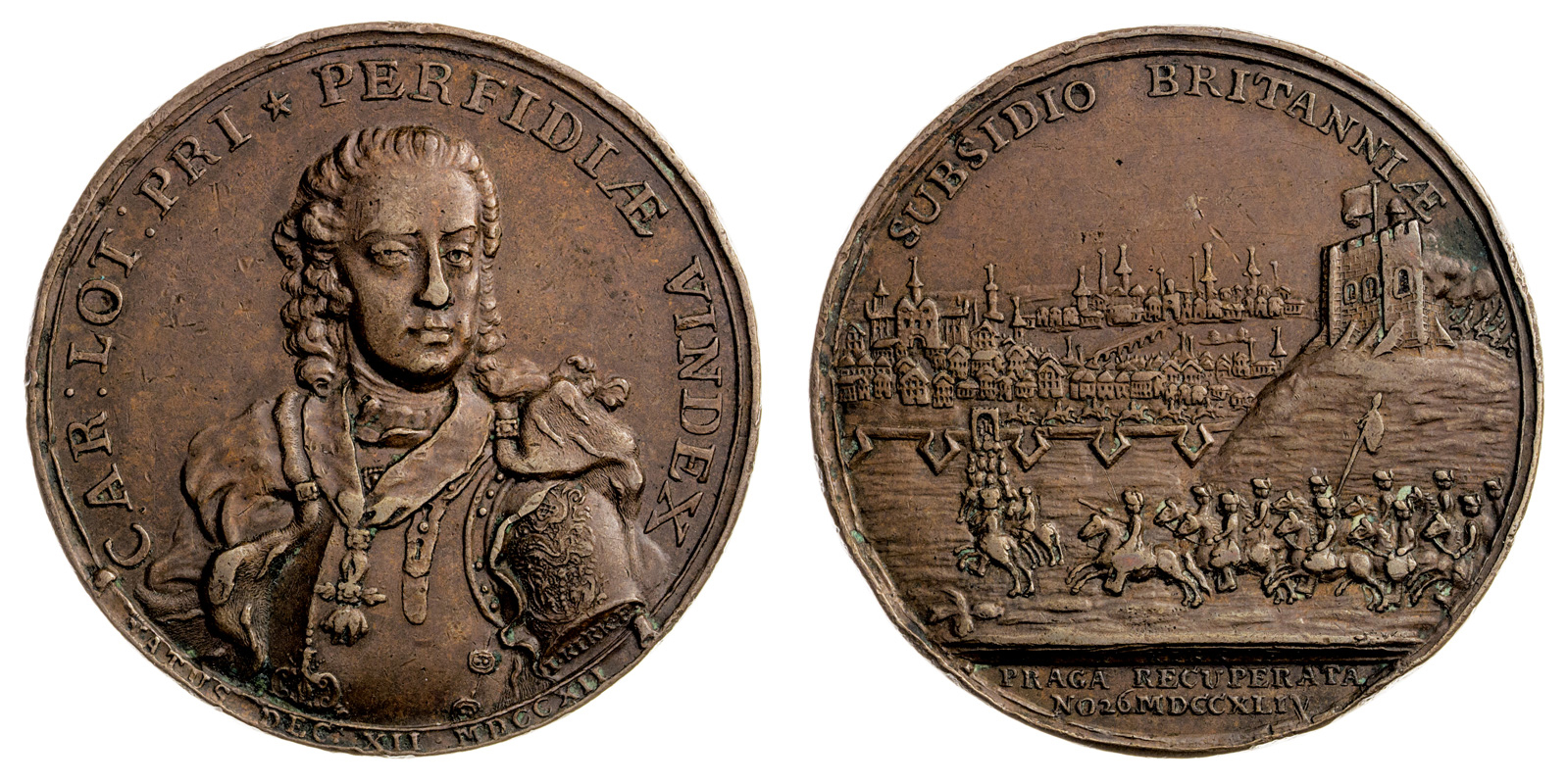 František Lotrinský Cu medaile Karla Lotrinského 1744 na ubránění Prahy před Prusy, 44 mm