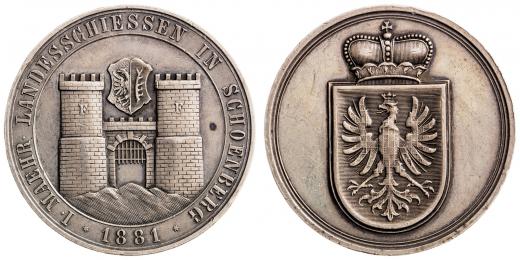 Šumperk Moravské zemské střelby 1881, Ag 33 mm, 16,62 g, n. hr.