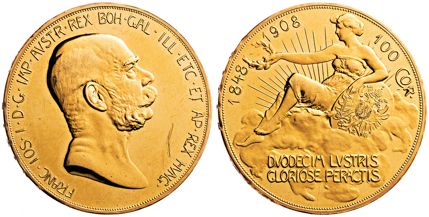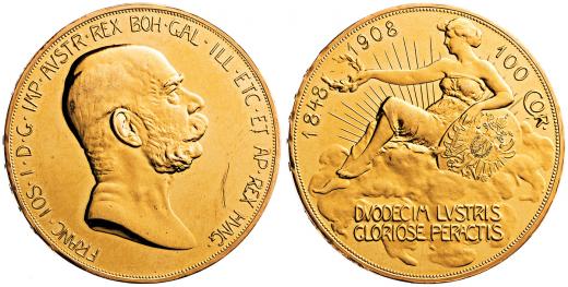 100 koruna 1908, jubilejní, škr.