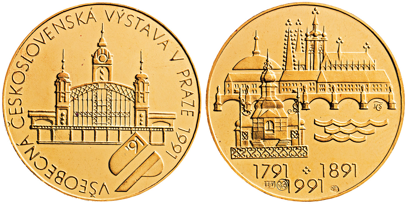 2 dukátová medaile 1991, 6,98 g, Všeobecná čs.výstava v Praze, orig.etue, certif.č. 389