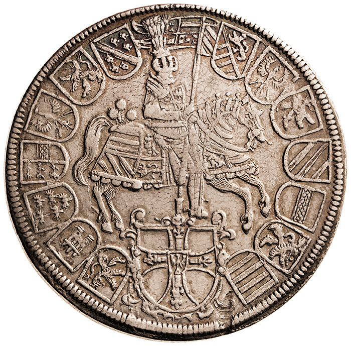2 tolar 1614, jako velmistr řádu německých rytířů, Dav. 5854, 56,87 g, dr. vada mater.