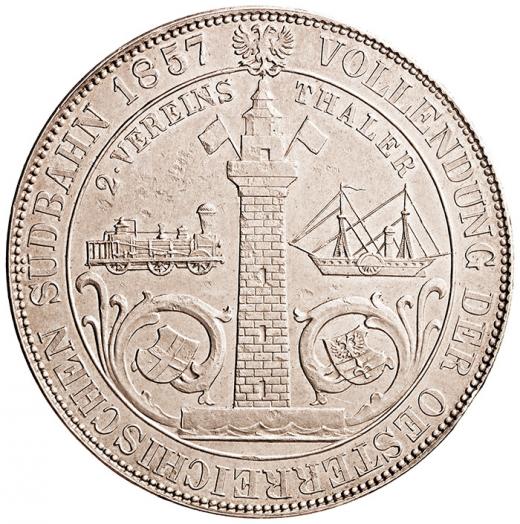 2 tolar 1857 A, spolkový, Jižní dráha, 37,0 g, n. hr., n. škr.