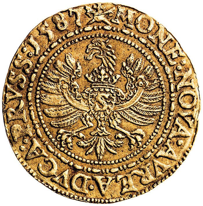 Dukát 1587, Konigsberg, 3,47 g, Fried. 315, nep.škr.