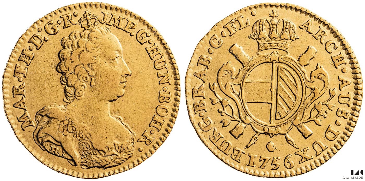 Marie Terezie (1740-1780) Souverain d´or 1756, Antverpy, 5,51 g, Her. 364, dr. hr.