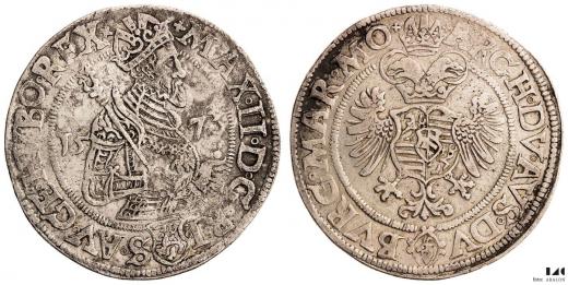 Maxmilian II. (1564-1576) 1/2 tolar 1573, Jáchymov, Geitzkofler, Hal. 232a, zn. minc. v líci i v rubu