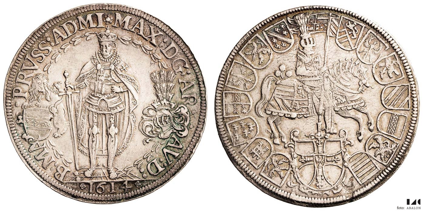 Arc. Maxmilian (1590-1618) 2 tolar 1614, jako velmistr řádu něm. rytířů, Dav. 5854, 56,98 g, dr. vada mater.