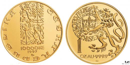 Č e s k á r e p u b l i k a 1 000, 2 500, 5 000 a 10 000 Kč 1997, Koruna česká, etue, karty