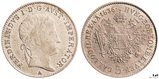 Ferdinand V. (1835-1848) 5 krejcar 1836 A, Ferdinandus, Her. 345