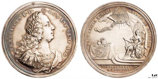 František Lotrinský Medaile na císařskou korunovaci 1745, Ag 44 mm, 29,36 g, sig. Vestner, Nov. D 6b