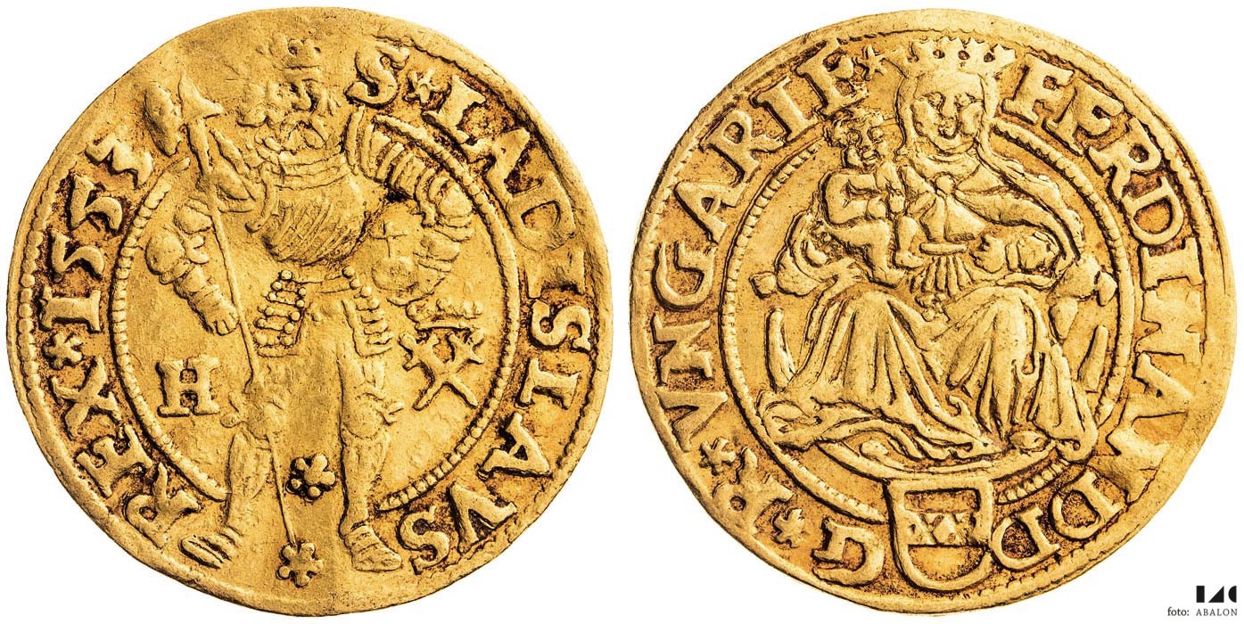 Ferdinand I. (1526-1564) Dukát 1553 H, Hermannstadt, 3,51 g, Hus. 898, zvlněný