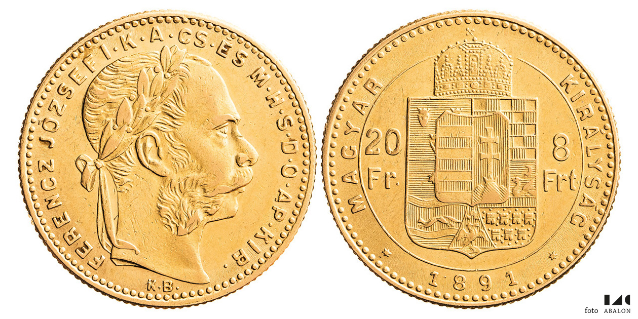 František Josef I. (1848-1916) 8 forint 1891 KB, Fiume