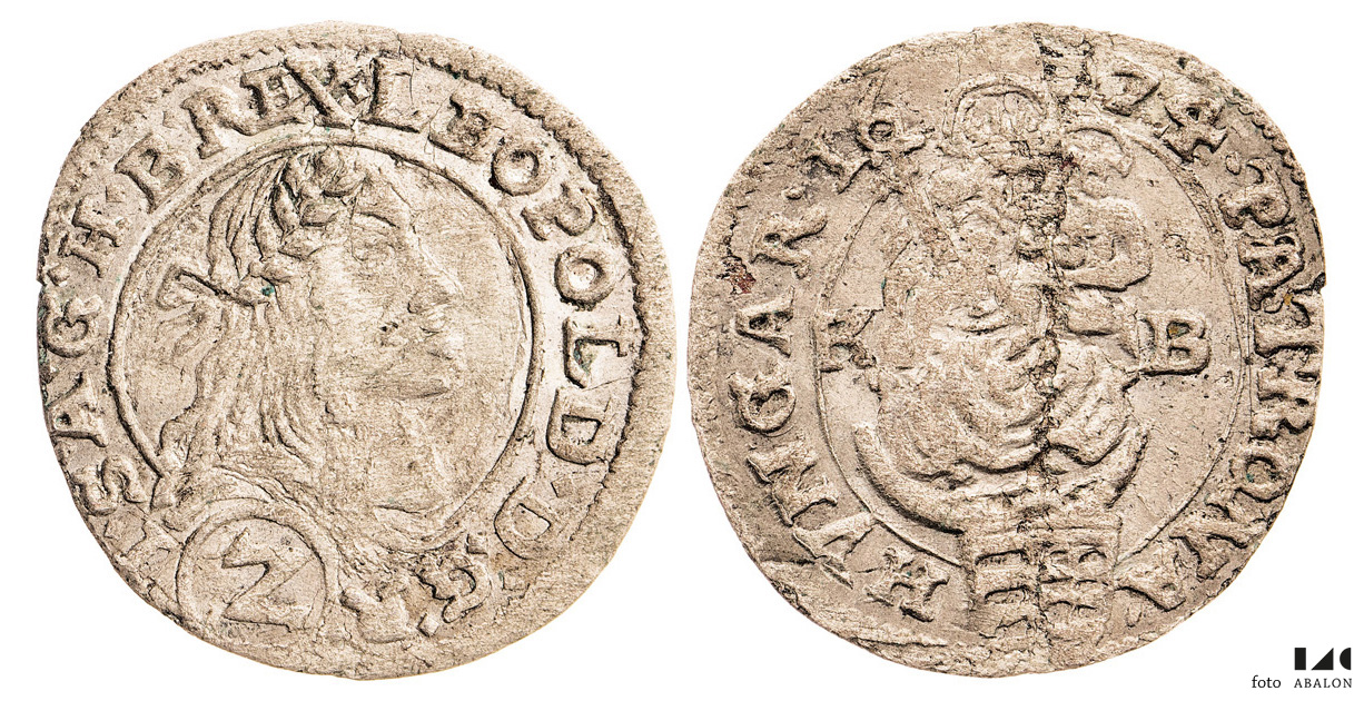 Leopold I. (1657-1705) 2 (Z) krejcar 1674 KB, škr. na rev., Hus. 1481