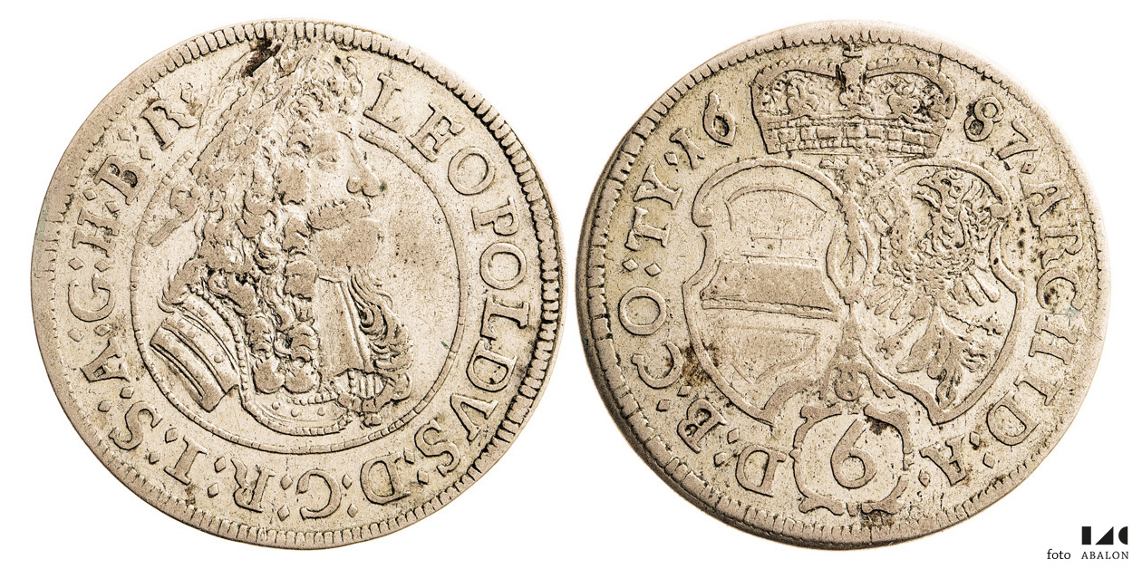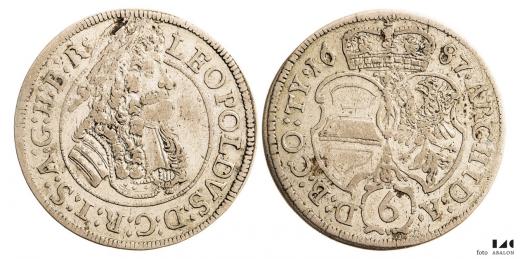Leopold I. (1657-1705) 6 krejcar 1687, Hall, nominál na Rev. ,Her. 1283 R