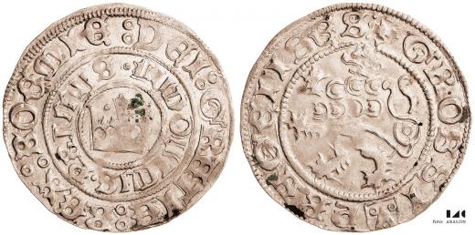 Pražský groš b.l., Jáchymov, 2,69 g, Sm. 1, krásný