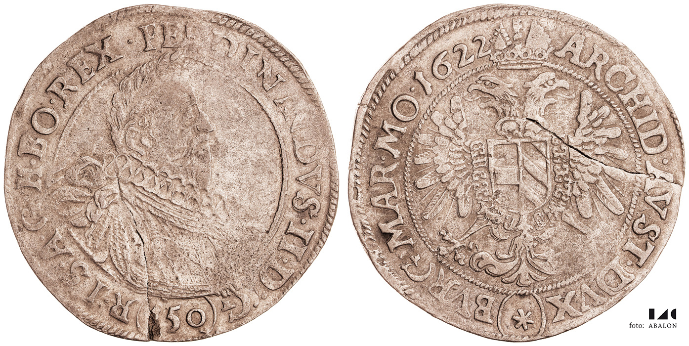 Tolar (150 krejcar) 1622, Kutná Hora, Hölzl, 25,31 g, Hal. 769, naprasklý