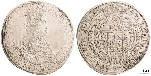 Tolar 1687 IAN, Graz, Her. 615, 28,53 g, přeražba z roku 1684