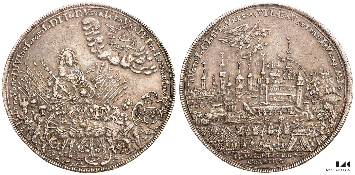 Tolar na podívanou (schautaler) 1686, na osovobození Budína, letopočet v chronogramu, Ag 52 mm, 28,33 g