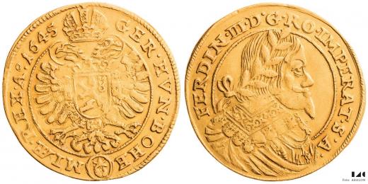 Ferdinand III. (1637-1657) 2 dukát 1645, Praha, Wolker, Hal. 1163, 6,83 g